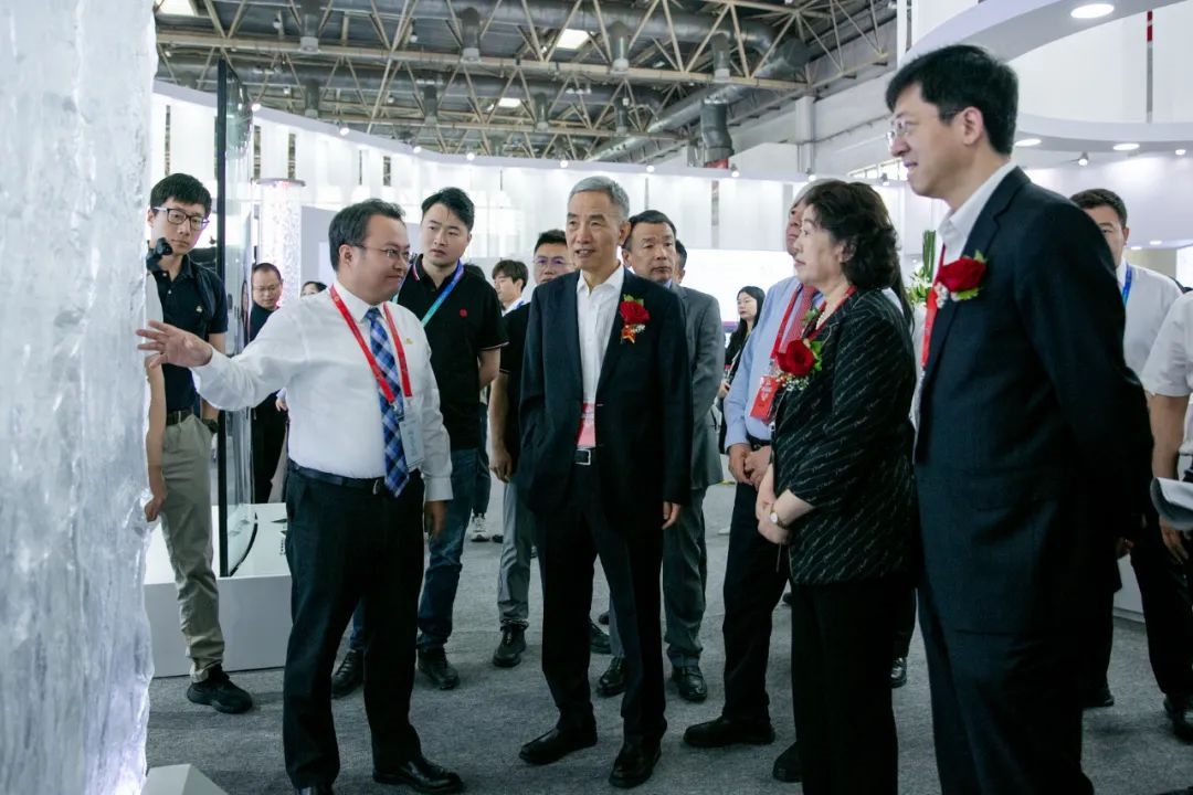 展会首日,中国建筑材料联合会会长阎晓峰、常务副会长陈国庆,中国工程院院士、中国建材集团总工程师、凯盛集团董事长彭寿,中国硅酸盐学会副理事长晋占平,中国建筑玻璃与工业玻璃协会会长张佰恒等行业领导莅临北玻展台参观指导。北玻股份副董事长、总裁高理全程接待,并重点向各位领导嘉宾介绍了北玻近年来在技术创新与产品研发方面的最新成果,包括建筑玻璃的工艺革新、琉璃幕墙系统的技术突破以及轻晶石装配式房屋系统在绿色建筑领域的前沿探索,获得现场领导的高度认可与肯定。
