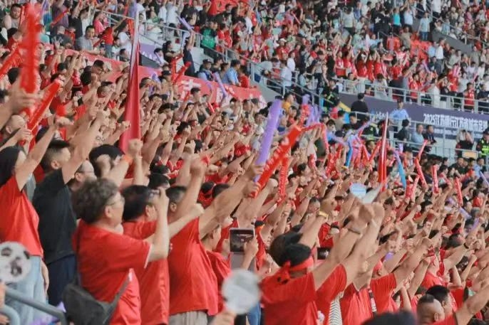 当东看台的忠实球迷拉开巨幅TIFO,盐城地标"大铜马"与佳成玻璃LOGO通过AR技术在空中融合。随着主持人喊出"这里是——盐城!",全场爆发出山呼海啸般的呐喊。