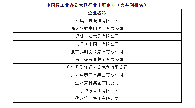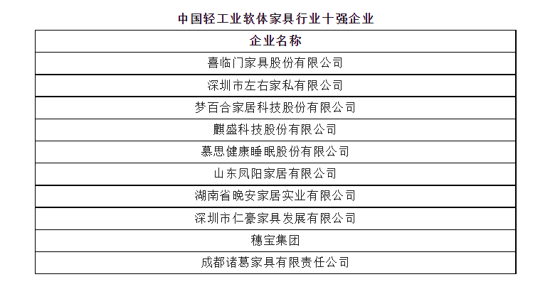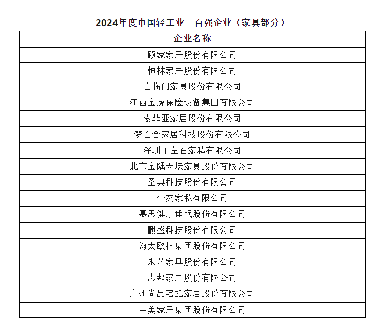 2024年度中国轻工业百强企业、家具行业十强企业名单发布