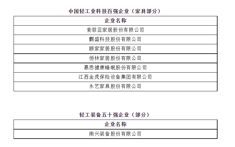 中国家具协会作为推荐单位,积极组织本行业企业参与评价工作,为企业争取行业荣誉。经协会推荐,17家协会会员企业入选中国轻工业二百强,7家企业入选中国轻工业科技百强,1家企业入选轻工装备五十强,11家企业入选中国轻工业办公家具行业十强(含并列排名),10家企业入选中国轻工业软体家具行业十强,12家企业入选中国轻工业成品及定制家具行业十强(含并列排名)。希望入选企业发挥示范带头作用,增强发展动力,激发创新活力,为推动家具强国建设做出更大贡献。