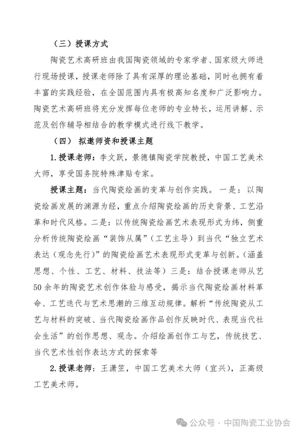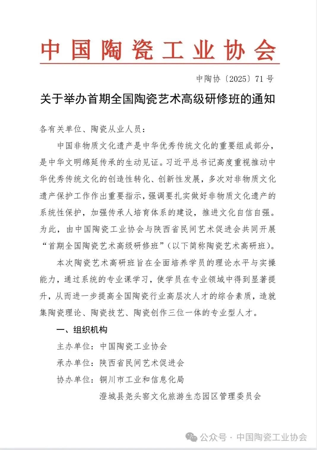 关于举办首期全国陶瓷艺术高级研修班的通知