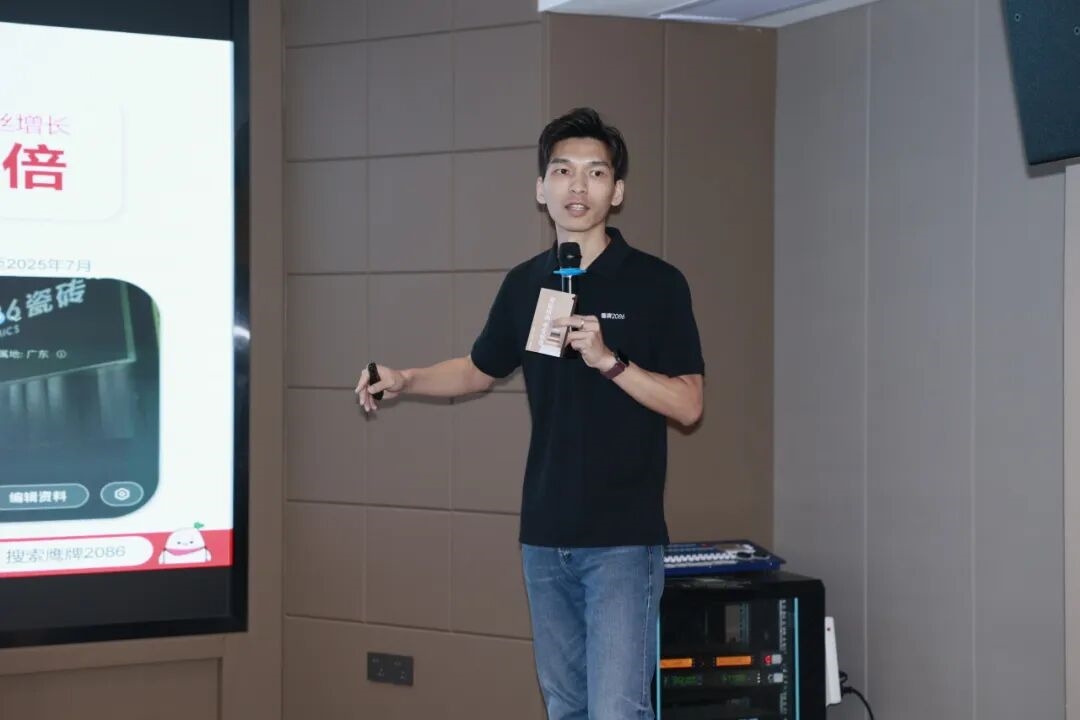 在新媒体营销上,鹰牌2086营销中心运营部高级培训讲师霍锦添展示了鹰牌2086在新媒体布局方面取得的阶段性成果,并发布了针对华中大区的新媒体营销支持政策,涵盖区域账号建设、专业团队指导、活动策划协助及激励机制等多方面,旨在助力经销商把握数字营销机遇,提升区域市场业绩。