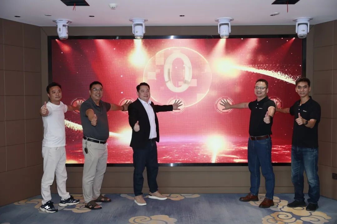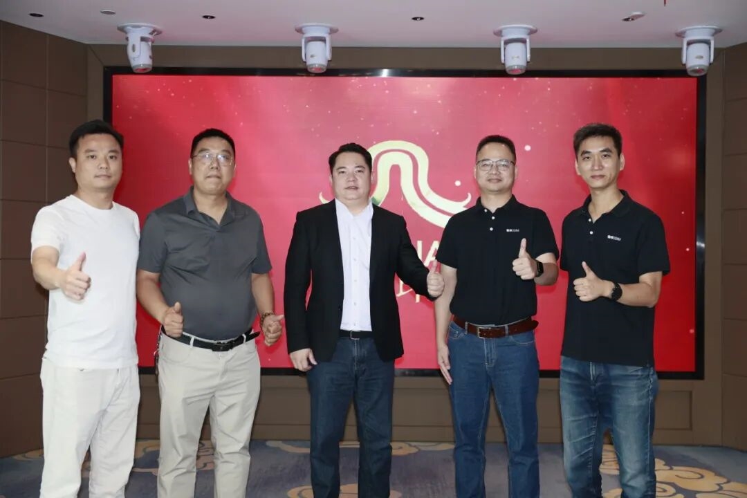 随着现场气氛渐入高潮,岭南印象VI正式发布,鹰牌2086营销中心副总经理朱文强、鹰牌2086华东区总监黄伟杰、鹰牌2086市场部经理李伟东,鹰牌2086长沙经销商代表蔡志芳、周胜福5位领导共同上台按下手印,这一动作不仅标志着鹰牌2086在东方文化IP产品序列上的进一步深化,也体现出品牌对传统文化现代转译的持续探索。