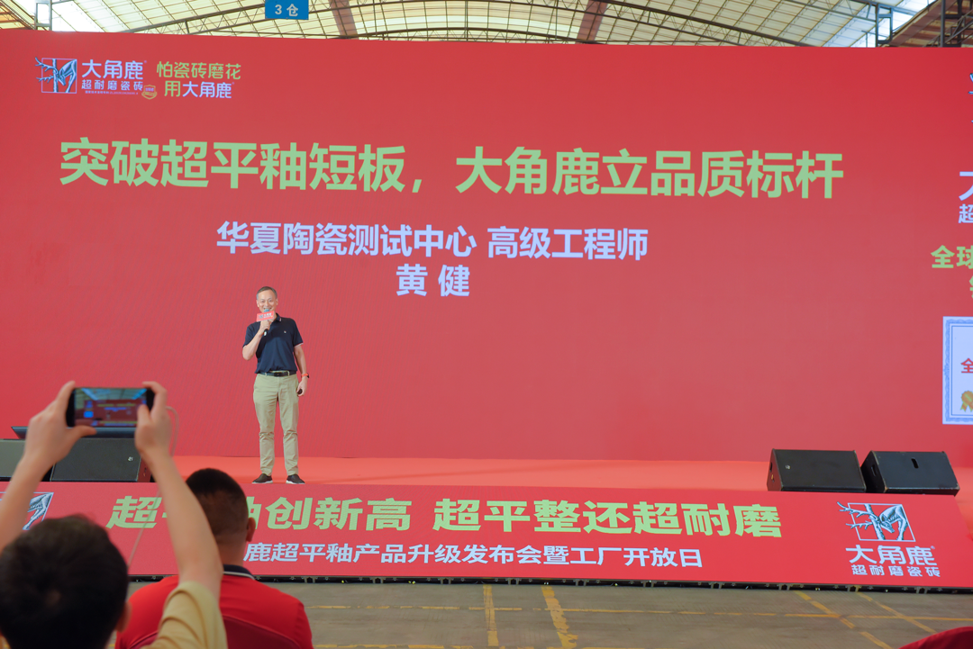 华夏陶瓷测试中心高级工程师 黄健也表示,大角鹿超平釉瓷砖的平整度与耐磨性均达到行业领先水准,成功打破“平与耐磨”难以兼得的行业魔咒。这一突破,让瓷砖的美学体验与功能性能真正合一,树立了行业品质新表率。