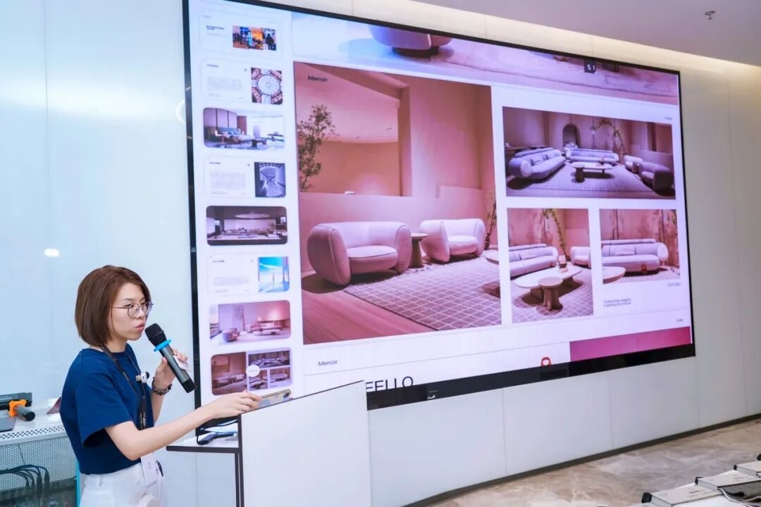 在活动的会议环节中,李颖娴主讲了米洛品牌的介绍,深入分析了品牌的核心价值和发展历程。她还详细介绍了米洛家居的多元产品系列,包括世家Legend、库玛Kouma、未逨Future和图费洛Tufello等,并重点讲解了各系列的面料特征和设计理念。李颖娴强调,米洛家居始终致力于满足全球消费者的个性化需求,传递出东方美学与国际潮流的独特魅力。