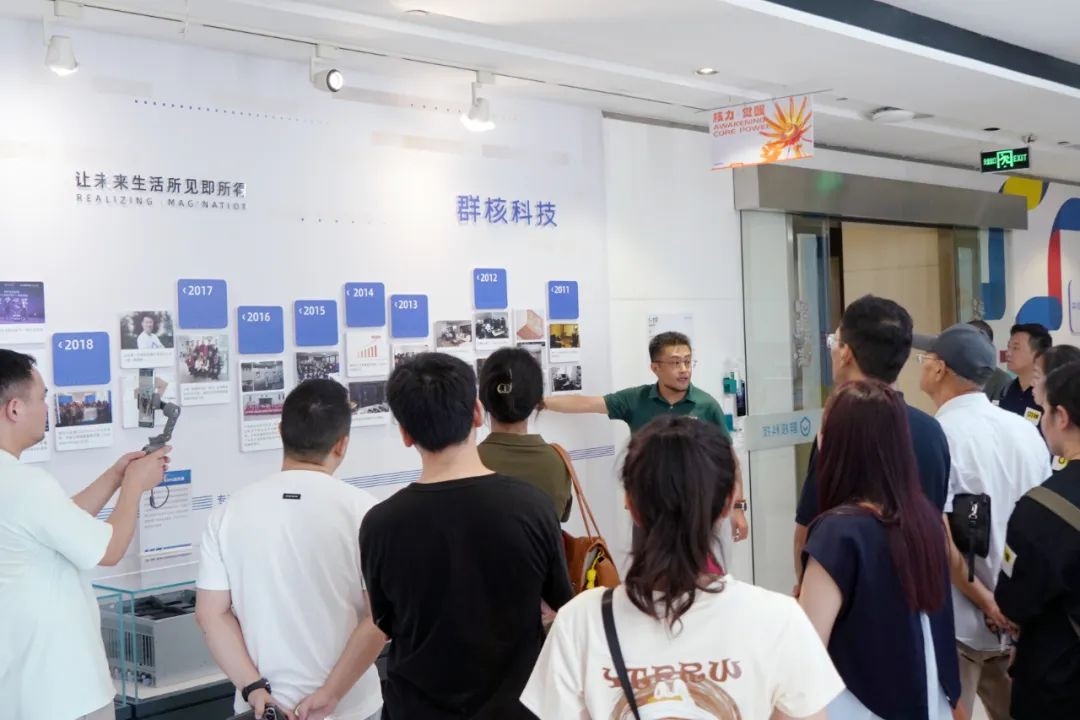参观一行在群核科技相关负责人介绍下多方位了解了群核科技的数字科技成就,清晰梳理了群核科技从初创企业跃升为国内空间设计软件行业龙头的发展脉络。从头款突破性软件的研发面世,到技术体系成熟的三大研究院矩阵建立,群核科技逐步构建起完整的技术护城河。其通过持续的技术创新,不仅实现了市占率稳健增长,还成功转型为智慧空间整体解决方案的技术驱动型服务商。