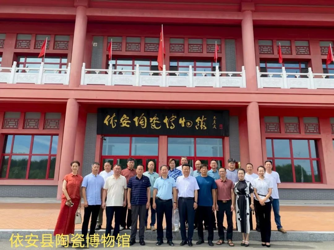 27日上午,调研团抵达依安县,在常务副县长于洋等陪同下,调研依安陶瓷博物馆及当地龙头企业中润陶瓷。馆内,王琦大师用依安本地陶土一次性烧制成高2.2米的《依克明安—巴桑》陶塑气势恢宏,人物神态栩栩如生,生动讲述着依安县的历史由来,令考察团成员震撼不已,收获一致好评。