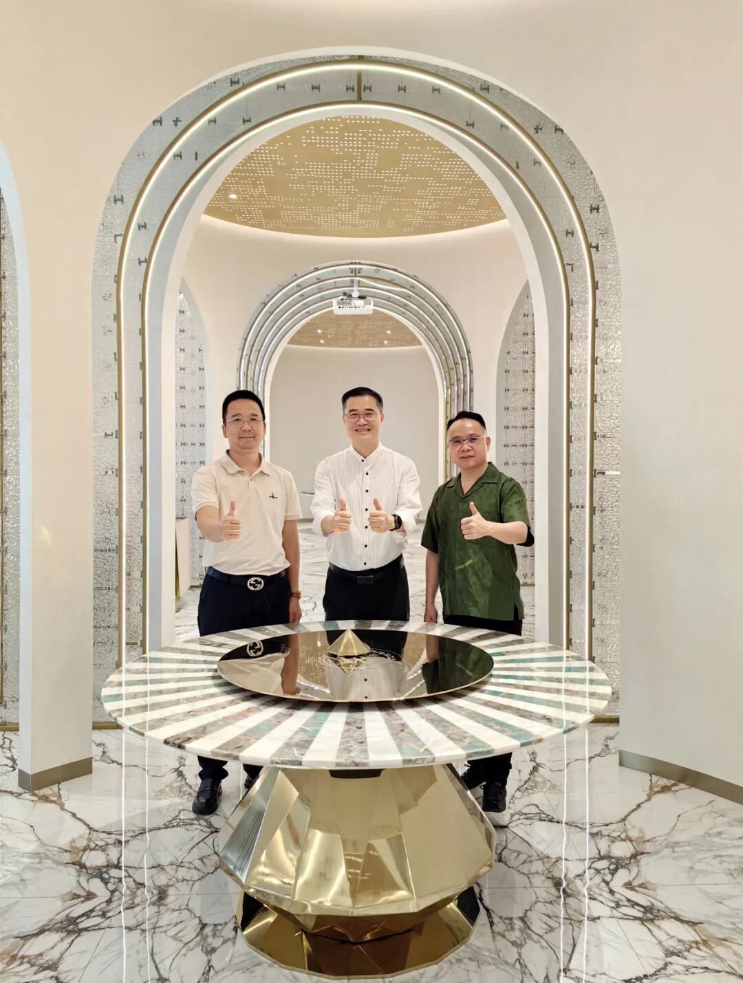 王克会长与黄进东总裁、大岭山家具协会梁晓东会长合影