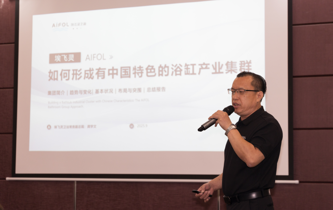 埃飞灵集团常务副总裁龚学文作《如何形成有中国特色的浴缸产业集群》的报告。他从全球卫浴发展趋势切入,详细阐述了中国卫浴行业过去十年取得的辉煌成就,埃飞灵集团目前在浴缸创新方面应用的新材料、新工艺以及目前取得的进步和成绩。