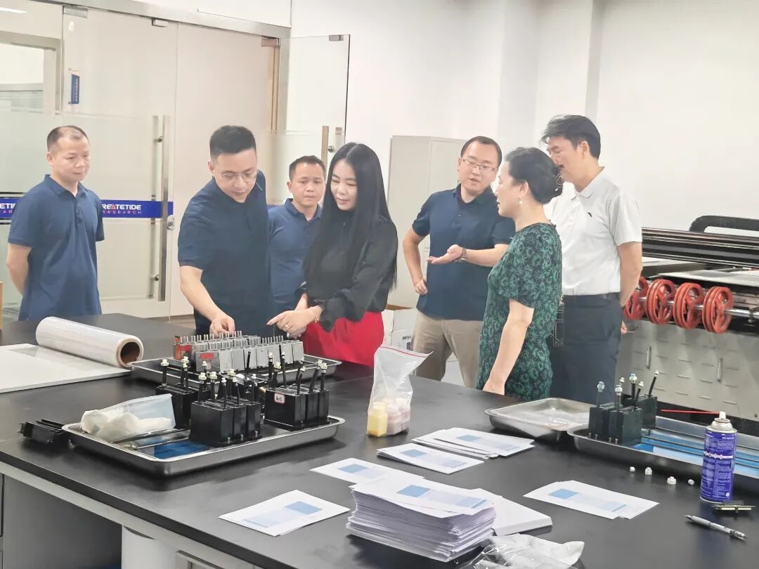 在康立泰公司常务副总经理戴建斌等的陪同下,协会一行参观了研究院的核心实验室与技术创新展示区,详细了解了康立泰在数码釉料、功能性墨水等方面的突破性进展,并对康立泰持续的研发投入与成果转化能力表示高度认可。
