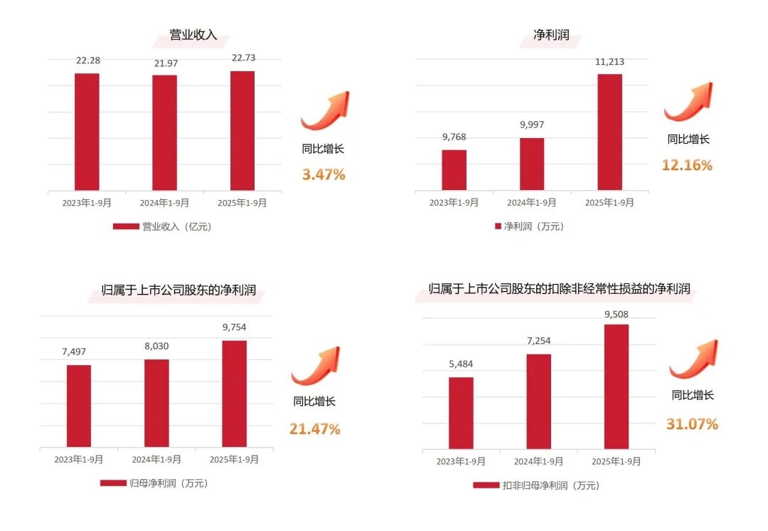 10月16日天安新材(603725.SH)发布2025年第三季度报告。前三季度,公司实现营业收入、归母净利润、扣非归母净利润三项指标的同比增长。集团通过精准投并购,构建贯穿材料研发、设计、制造与整装服务的泛家居产业生态闭环,实现了资源的优化配置和高效利用,将并购红利转化为持续的业绩突破。
