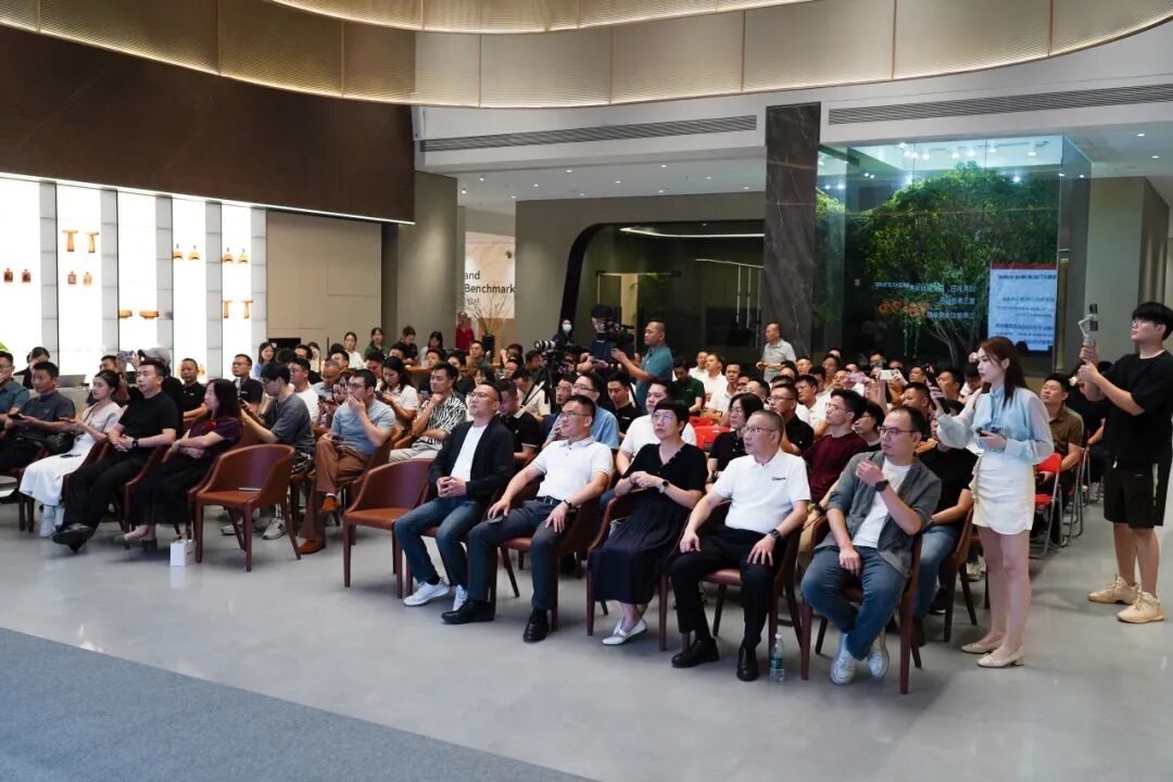 鹰牌实业总裁陈贤伟,鹰牌实业董事&天安新材董事长助理徐芳,鹰牌实业常务副总裁白秀芬,鹰牌实业副总裁陈方根,鹰牌实业副总裁郑雄林,鹰牌实业副总裁姚松榕,鹰牌实业副总裁庄永晖与鹰牌新材事业部总经理王刚刚等领导及行业媒体、业内精英齐聚一堂,共同解码鹰牌新材布局存量市场的全新战略,同步见证新材展馆升级发布。