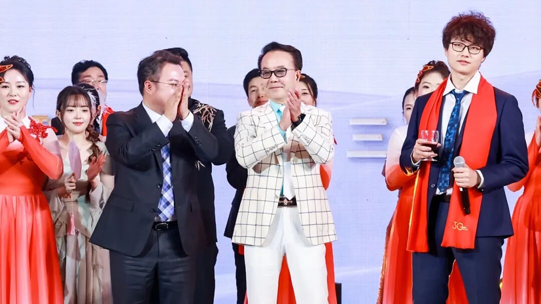 在庆典晚会的热烈氛围中,一个寓意深远、薪火相传的温情时刻将现场气氛推向新的高潮。董事长高学明先生带领着总裁高理与年轻一代的高文瀚共同举杯,向全场员工致以最诚挚的敬意与感谢。