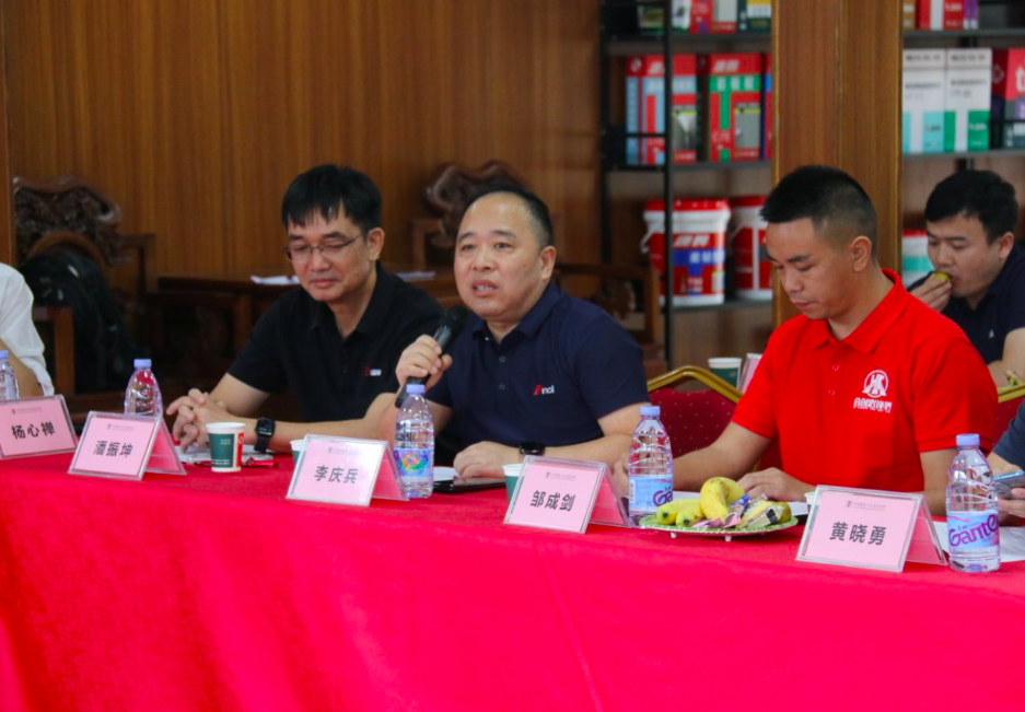中国建筑卫生陶瓷协会副秘书长马德隆、陶瓷砖分会副秘书长蒲瑶,唐姆节能建材(北京)股份有限公司战略交付事业部总经理古志峰、事业部副总经理卢丽妹、事业部副总经理潘振坤、副总经理张新华、研发总监谭泳怡,广东东鹏控股股份有限公司装到家业务企划经理胡祖超,丽适岩板总经理张泽旺,佛山市依诺陶瓷有限公司成品交付负责人李庆兵、技术工程师易林果,广东新锦成陶瓷集团有限公司产品总监张彪,奥卓斯岩板岩板交付中心总监李长泳、经理林晖援,佛山欧神诺陶瓷有限公司辅料负责人林福春、德利丰智能家居有限公司市场部经理陈广强、广东金意陶陶瓷集团有限公司产业研究院工程技术部部长黄晓勇,广东简一(集团)陶瓷有限公司交付研发经理曾蓉蓉,马可波罗控股股份有限公司产品图书馆镶贴技术主管许永贵、技术员潘杰,欧文莱瓷砖交付负责人陈裕文,HBI交付主管陈克威、交付专员孔令贤,大将军售后主管李海峰,岩导师创始人杨心禅,瓦克化学(中国)有限公司技术应用经理岑志杰,圣戈班(中国)管理有限公司销售经理安宁,西卡德高瓷砖胶应用技术主管王平,合创岩世界创始人邹成剑等来自协会、主材生产企业、辅材生产企业的四十余名代表参加了会议。