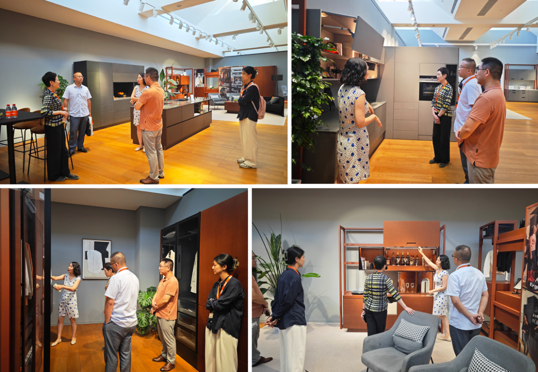 随后,来到百隆产品展厅,参观体验了百隆全系列五金产品的极致性能与创新设计。市场总监赵晋现场详细介绍了百隆铰链、抽屉系统、导轨及上翻门系列等核心产品在家具中的应用和近乎完美的解决方案,重点分享了百隆在提升家具功能性、耐用性与用户体验方面的技术优势与设计理念。