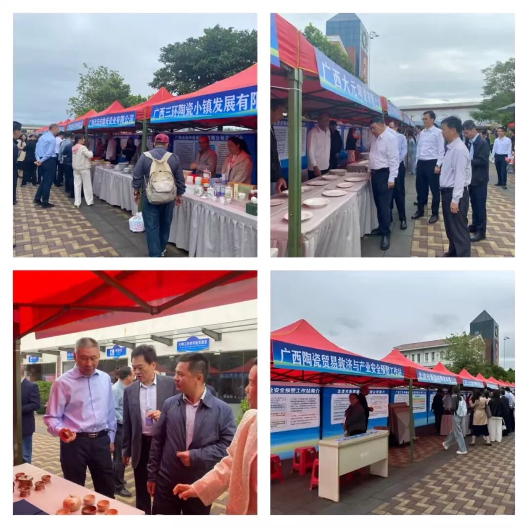 广西陶瓷贸易救济与产业安全预警工作站也设立了专门的宣传展位。通过图文展示与现场讲解相结合的方式,向驻足参观的领导、嘉宾详细介绍了工作站在陶瓷贸易救济、产业安全预警等方面的核心职能与突出成果,为陶瓷行业同仁深入了解相关贸易政策与维护自身权益搭建了有效的普及平台。