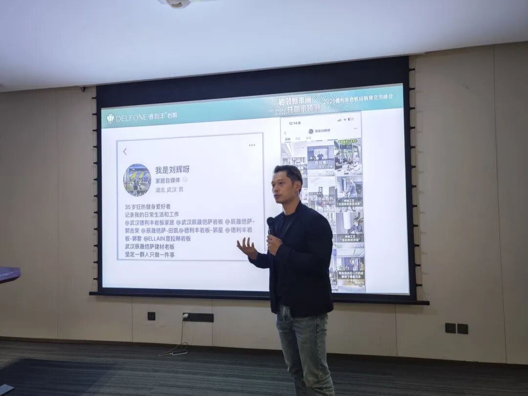 德利丰武汉经销商刘辉作为“示范性标杆新媒体团体”奖项获得者,他聚焦新媒体运营带来满满干货分享。从账号定位、内容选题策划,到短视频拍摄剪辑技巧,再到私域流量池搭建与流量转化路径优化,全方位拆解新媒体运营秘籍,用自身实战经验讲解如何借助新媒体工具提升品牌曝光与终端业绩。