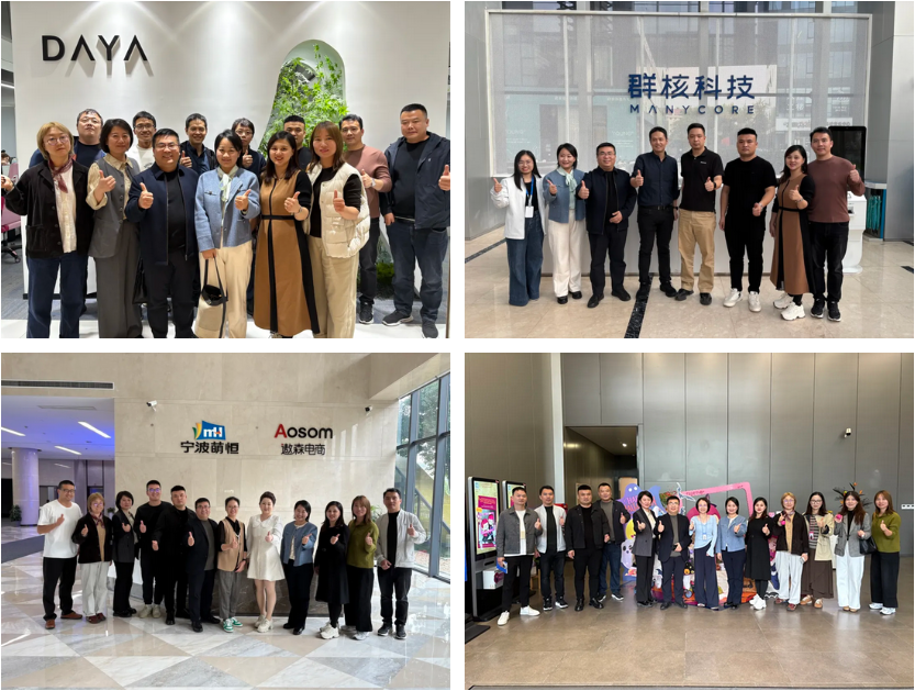 行程中,交流团先后走进大健云仓苏州总部、苏州跨境生态产业园及跨境选品中心、苏州市跨境卖家俱乐部,近距离感受跨境电商生态布局与数字化供应链服务体系;实地参访恒林家居股份、安吉万宝智能家居科技、杭州霖生家居科技、杭州大雅信息科技、杭州群核科技(酷家乐)总部、宁波遨森家居科技、宁波凯越集团、宁波维亿贸易、宁波天齐国际贸易集团等行业标杆企业,涵盖智能家居研发、跨境运营服务、数字化设计工具、全球化贸易布局等多元领域。