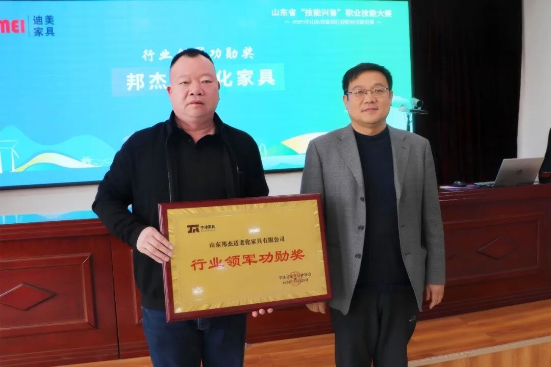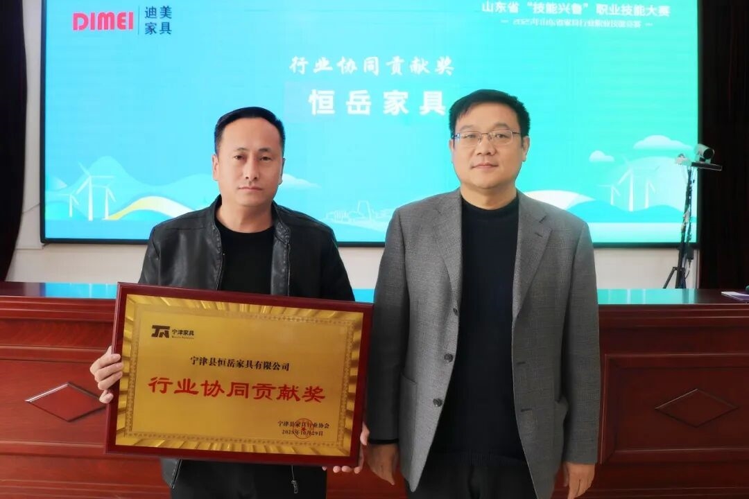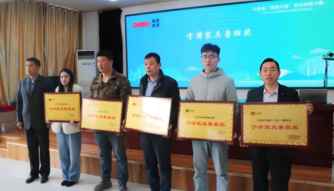 颁奖仪式上,山东省轻工纺织烟草工会副主席邱键为山东迪美家具有限公司、山东邦杰适老化家具有限公司、宁津县恒岳家具有限公司颁发“行业引领典范奖”“行业领军功勋奖”“行业协同贡献奖”;山东省家具协会执行会长韩庆生为大柳镇5家企业颁发“宁津家具鲁班奖”;县总工会党组书记、常务副主席孙久生为宁津5家企业颁发“宁津家具行业新锐奖”。