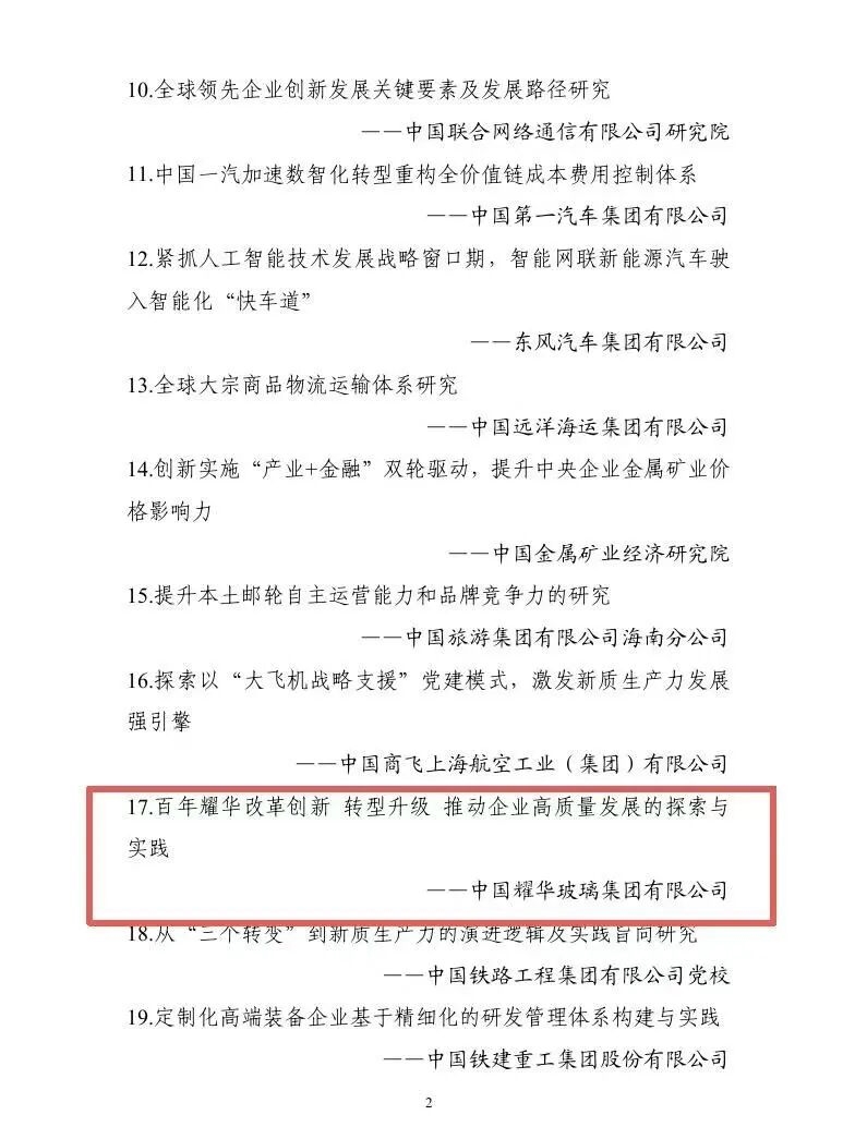 优秀!耀华改革成果入选国资国企优秀研究成果集